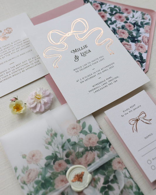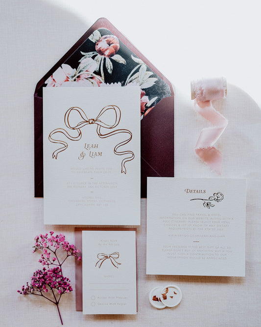 Bridgerton Bow Invitation Suite on Handmade Paper